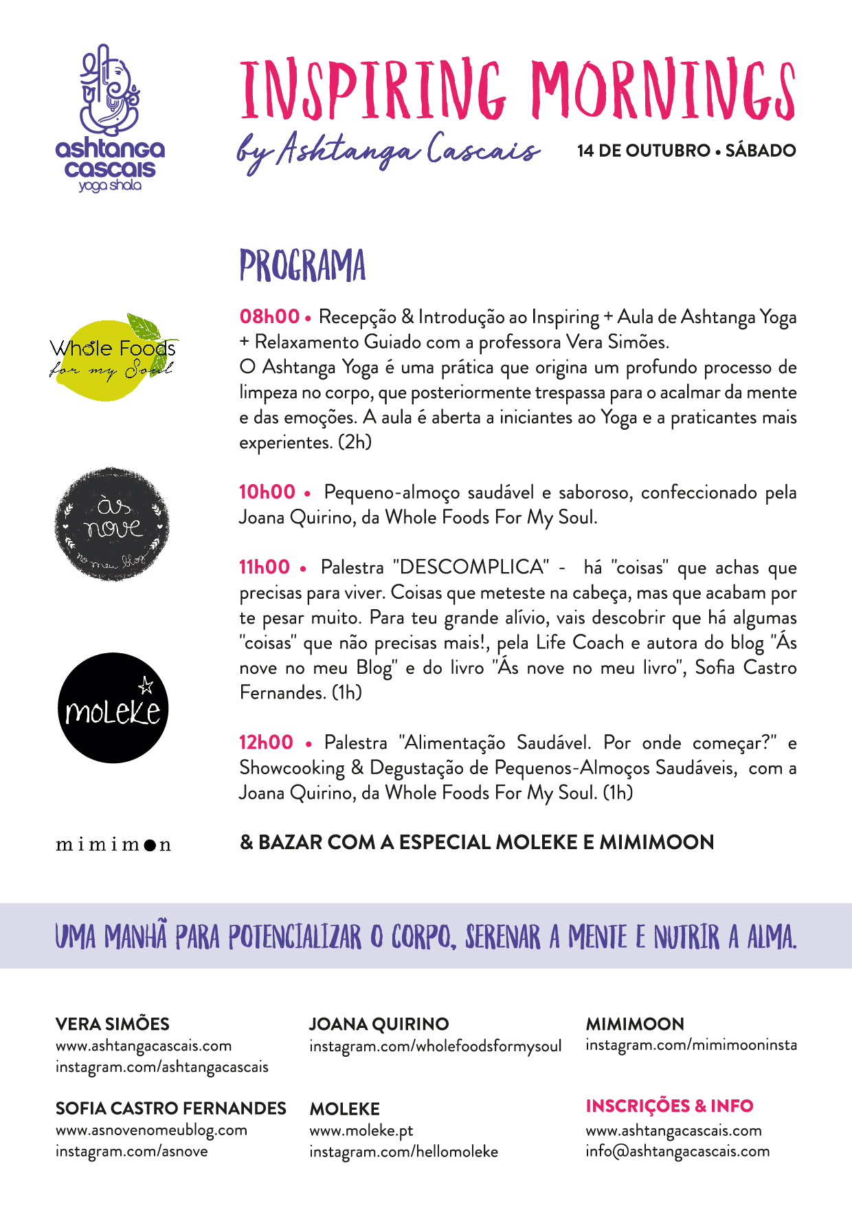 - Setembro 11, 2017 InspiringMornings_Web2 0 BOAS PRÁTICAS Recent PostsFaça um favor a si mesmo.A motivação para pararRetiro 22 a 24 de Maio, Costa VicentinaWorkshop Susanna Finocchi, Fevereiro